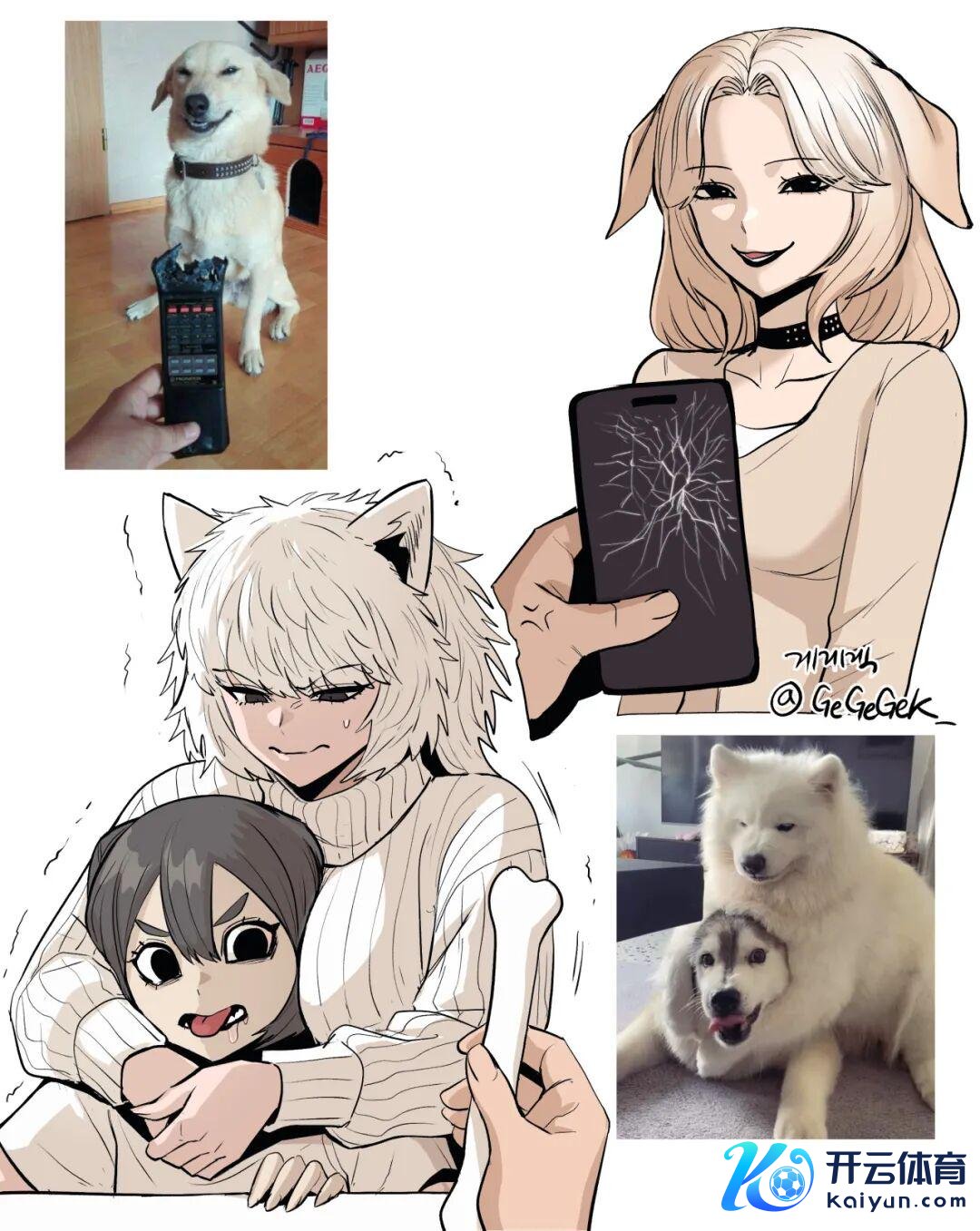 在GeGeGek的拟东谈主系列里,猫咪是被形容得最多的小动物,各式猫娘推而广之。而他画的小狗亦然全身长满一种幽闲着“我很好rua”信息的毛发。