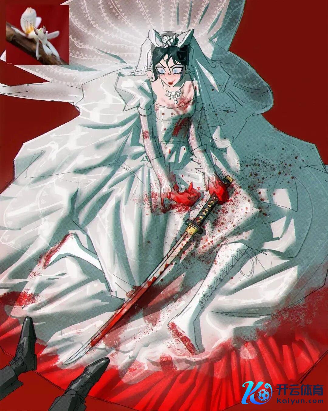 因此那张拟东谈主就形成了在婚典上新娘一刀砍了新郎。